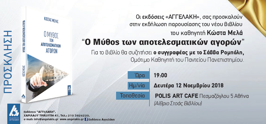 Tη Δευτέρα 12 Νοεμβρίου θα παρουσιαστεί το νέο βιβλίο του καθηγητή Κώστα Μελά με τίτλο «Ο μύθος των αποτελεσματικών αγορών».