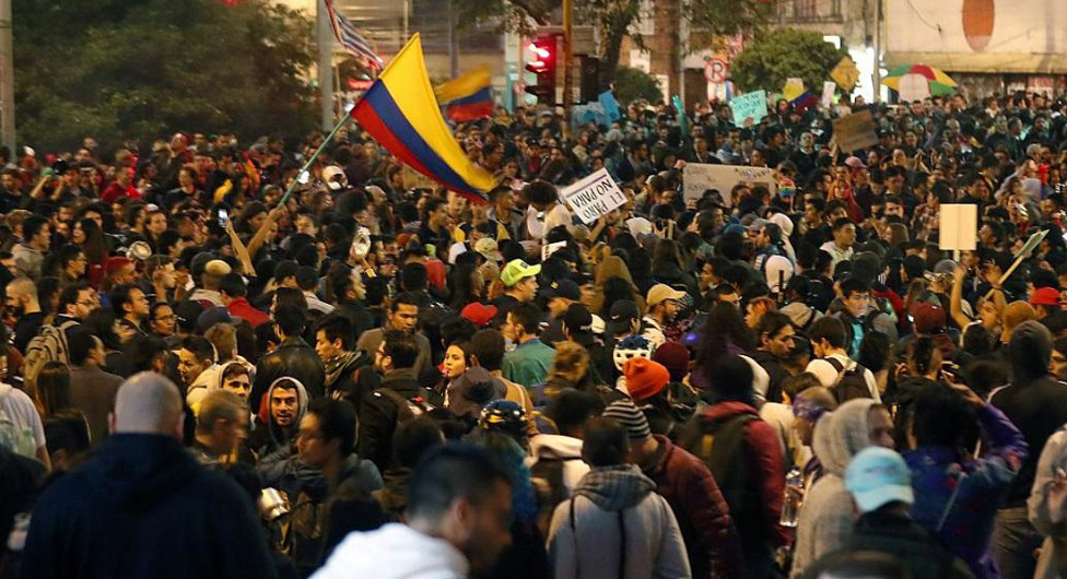 Διαδηλωτές κατέκλυσαν την κεντρική Πλατεία Μπολίβαρ στην Μπογοτά, την πρωτεύουσα της Κολομβίας, χθες Δευτέρα για να εκφράσουν την εναντίωσή τους στη μεταρρύθμιση του φορολογικού κώδικα που συζητείται στο Κογκρέσο της χώρας, καθώς το κύμα μαζικών κινητοποιήσεων στη χώρα της Λατινικής Αμερικής έφθασε σε διάρκεια τις 26 ημέρες.