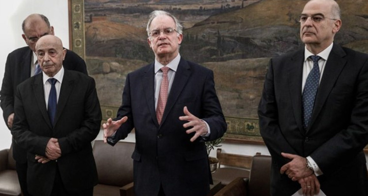Για συνωμοσία που επιβουλεύεται τα δικαιώματα και τα συμφέροντα του Λιβυκού και Ελληνικού Λαού μίλησε ο Πρόεδρος της Βουλής των Αντιπροσώπων της Λιβύης Αγκίλα Σάλεχ Ίσσα μετά το τέλος της συνάντησης που είχε με τον Πρόεδρο της Βουλής των Ελλήνων Κώστα Τασούλα και τον υπουργό Εξωτερικών Νίκο Δένδια.