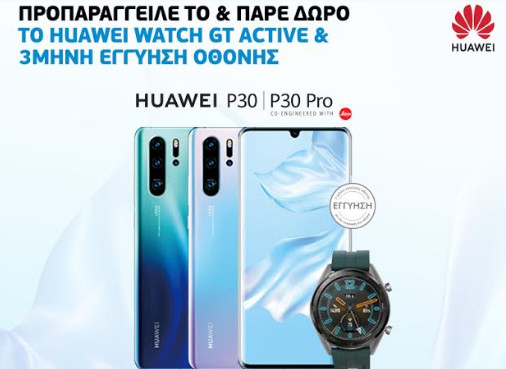 Τα πολυαναμενόμενα smartphones της Huawei P30 και Huawei P30 Pro είναι διαθέσιμα για προπαραγγελία στα καταστήματα WIND και στο www.wind.gr, με δώρο το νέο Huawei Watch GT Active αξίας 249€ και μία αντικατάσταση οθόνης μέσα σε 3 μήνες*!