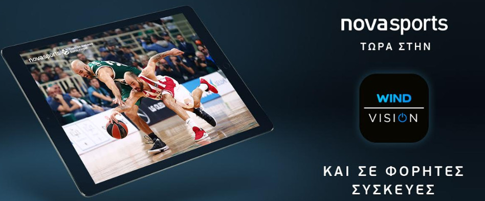 Μια νέα δυνατότητα προσφέρει στους συνδρομητές της η WIND VISION προσθέτοντας τα κανάλια Novasports στο πλούσιο περιεχόμενο της εφαρμογής WIND VISION για φορητές συσκευές.