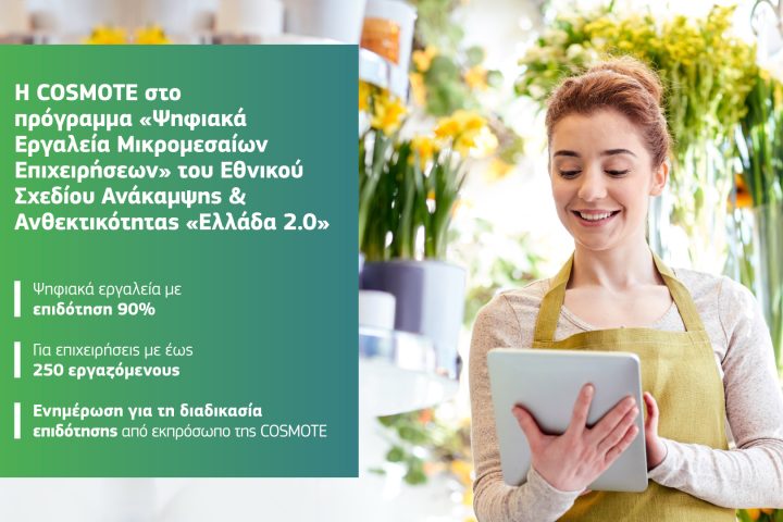 Η COSMOTE συμμετέχει στο πρόγραμμα «Ψηφιακά Εργαλεία Μικρομεσαίων Επιχειρήσεων»