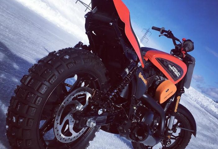 Τα 8 εκπληκτικά Street Rod 750 Flat Track έχουν τροποποιηθεί από την IDP Moto και για την μετατροπή τους σε Ice Track έχουν χρησιμοποιηθεί ελαστικά 500-stud