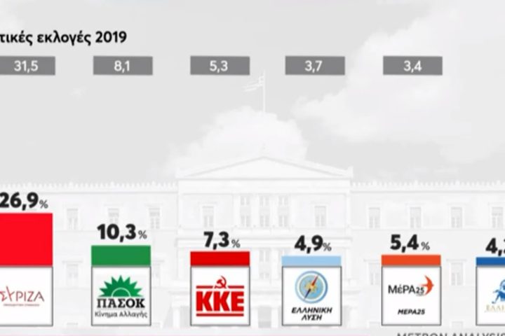 Metron Analysis: Στο 28,7% η ΝΔ- Προβάδισμα 15,9 μονάδων από το ΠΑΣΟΚ – Στο 4,9% ο ΣΥΡΙΖΑ