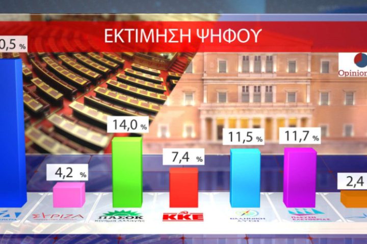 Opinion Poll: Στις 16,5 μονάδες το προβάδισμα της ΝΔ – Στο 4,2% ο ΣΥΡΙΖΑ – 22 μονάδες μπροστά για την πρωθυπουργία ο Κ. Μητσοτάκης