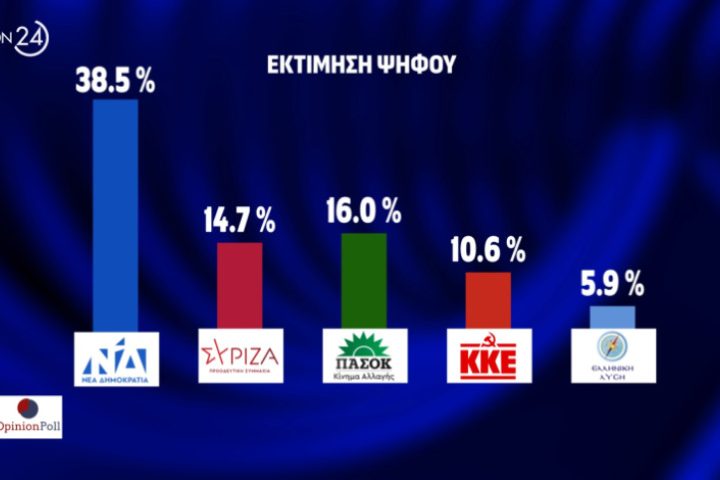 Opinion Poll: ΝΔ 39,1%, ΣΥΡΙΖΑ 17,3%