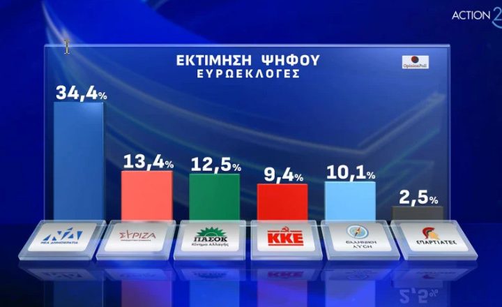 Opinion: Στις 19,7 μονάδες η διαφορά ΝΔ με ΠΑΣΟΚ για τις ευρωεκλογές, νέα πτώση για ΣΥΡΙΖΑ