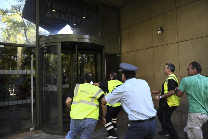 Ελλάδα·Επικαιρότητα 14/09 Νέα ένταση έξω από το υπουργείο Ανάπτυξης Οι μεταλλωρύχοι που πραγματοποιούσαν συγκέντρωση έξω από το υπουργείο, με βασικό αίτημά τους την παραχώρηση και της τρίτης άδειας για την Ολυμπιάδα, πληροφορήθη