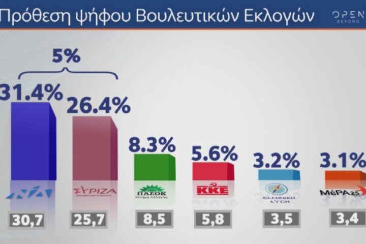 RASS: Στο 7,2% η διαφορά ΝΔ-ΣΥΡΙΖΑ – Στο 9,5% το ΠΑΣΟΚ