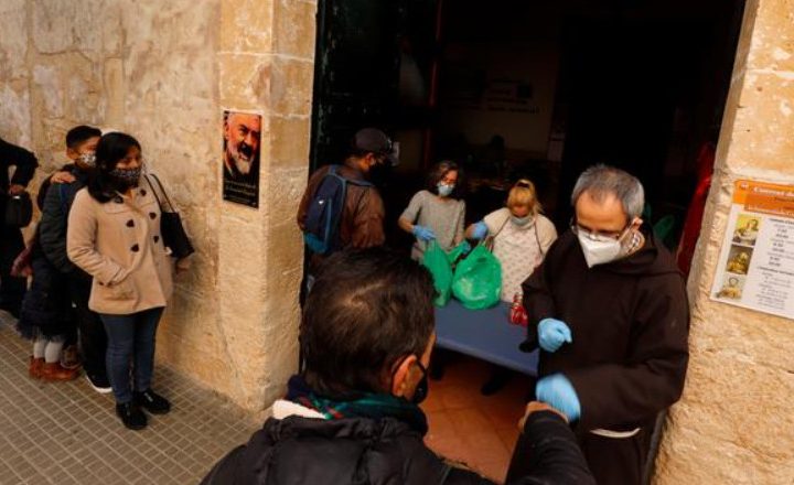Ευρώπη·Οικονομία 07/01 Πανδημία: Ανέχεια και πείνα στη Μαγιόρκα Στην ουρά περιμετρικά της εκκλησίας των καπουτσίνων στο ιστορικό κέντρο της Πάλμα δε Μαγιόρκα πολλοί φορούν γυαλιά ηλίου και ας έχει συννεφιά.