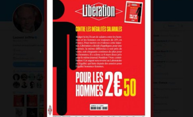 Επικαιρότητα·Κόσμος 08/03 Liberation: Πουλάει σήμερα το φύλλο της 25% ακριβότερα στους άνδρες Οι ανισότητες μεταξύ ανδρών και γυναικών καταγγέλλονται στα περίπτερα: η γαλλική εφημερίδα Liberation πωλείται σήμερα, 8 Μαρτίου, διεθνή ημέρα για τα δικαιώματα των γυναικών, 25% ακριβότερα στους άνδρες απ ό,τι στις γυναίκες,
