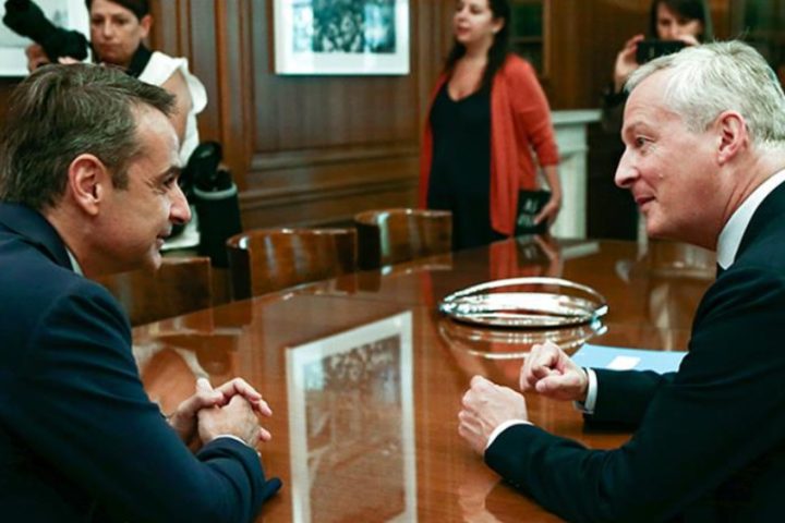 Ελλάδα·Πολιτική 24/01 Διπλό γαλλικό νεύμα στο Νταβός Η συνάντηση του Κυριάκου Μητσοτάκη με τον Γάλλο υπουργό Οικονομικών Μπρουνό Λε Μερ στο Νταβός είχε ως αποτέλεσμα ένα διπλό θετικό γαλλικό νεύμα