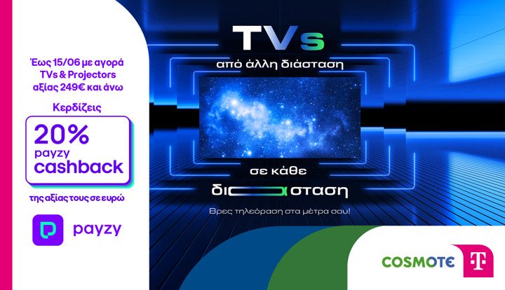 20% payzy cashback για αγορά τηλεοράσεων & projectors από την COSMOTE TELEKOM και τον ΓΕΡΜΑΝΟ