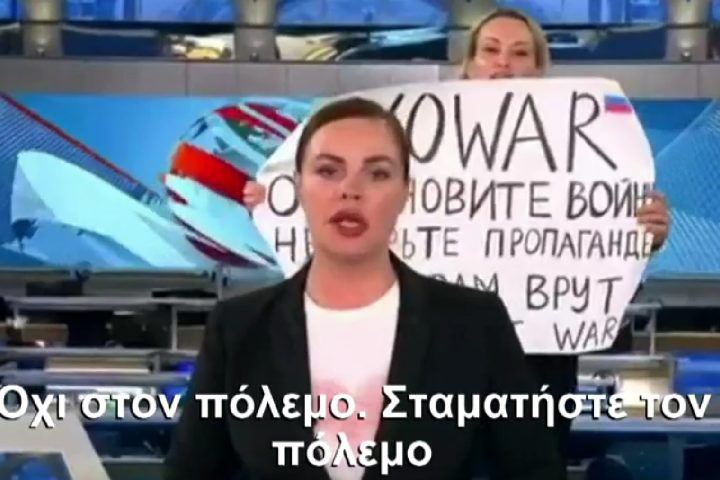 Τον γύρο του κόσμου κάνει μια Ρωσίδα δημοσιογράφος του πρώτου καναλιού της κρατικής ρωσικής τηλεόρασης, η οποία εμφανίστηκε με ένα αντιπολεμικό πλακάτ στον αέρα