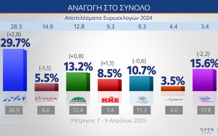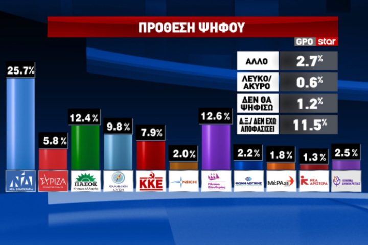 GPO: Στο 25,7% στην πρόθεση ψήφου η ΝΔ – Καταλληλότερος πρωθυπουργός για άλλη μία φορά ο Κ. Μητσοτάκης