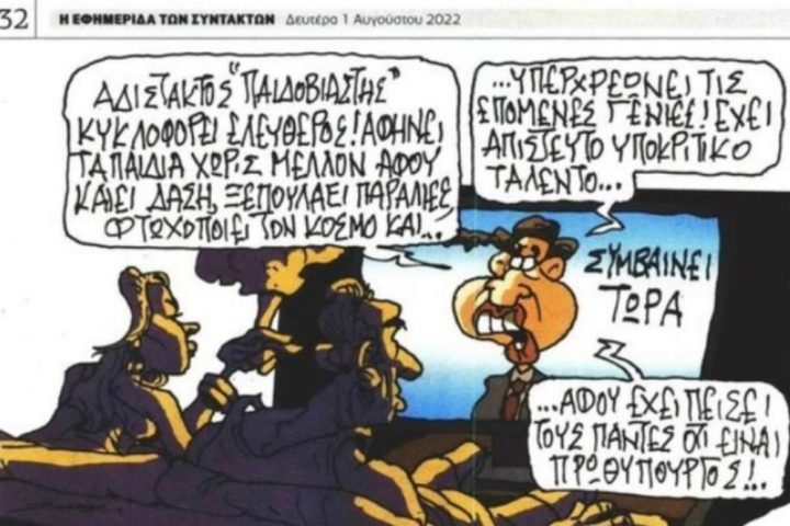 Με μία “πολιτική” γελοιογραφία, η ΕΦΣΥΝ ξεπερνά κάθε όριο χυδαιότητας. Χρησιμοποιώντας τον μανδύα της αντιπολίτευσης, η Εφημερίδα των Συντακτών επιτίθεται στον Έλληνα πρωθυπουργό, με ύβρεις και αδιανόητες κατηγορίες. Δείτε το σκίτσο: Αδιανόητη