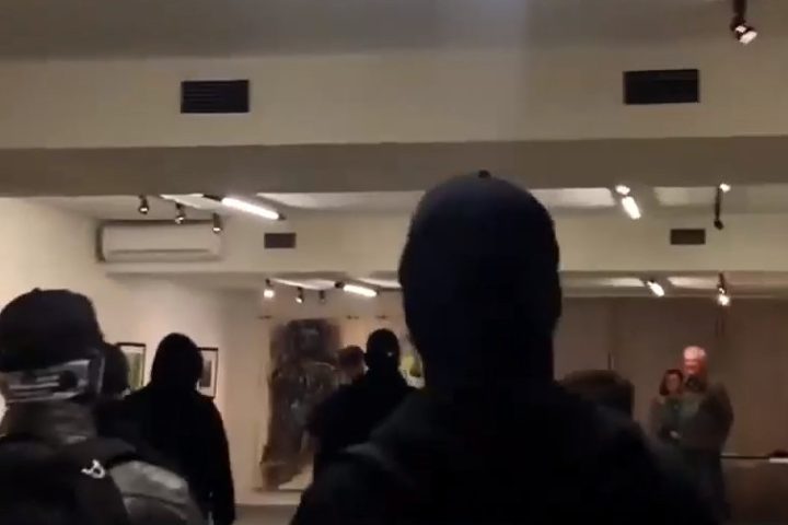 Εισβολή σε καλλιτεχνική έκθεση σε αίθουσα του δήμου Καλαμαριάς στη Θεσσαλονίκη πραγματοποίησαν κουκουλοφόροι, μέλη της Χρυσής Αυγής, το βράδυ της Τετάρτης.