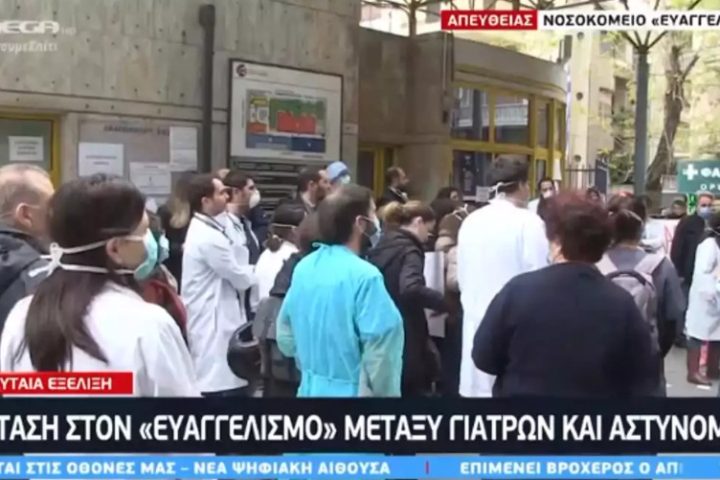 Εν μέσω κορωνοϊού γιατροί έκαναν συγκέντρωση στον Ευαγγελισμό – επενέβη η αστυνομία Σήμερα είναι η Παγκόσμια Ημέρα Υγείας και γιατροί και νοσηλευτές στον Ευαγγελισμό έκαναν εν μέσω κορωνοϊού συγκέντρωση στην είσοδο του νοσοκομείου 07/04 Ελλάδα·Επικαιρότητα