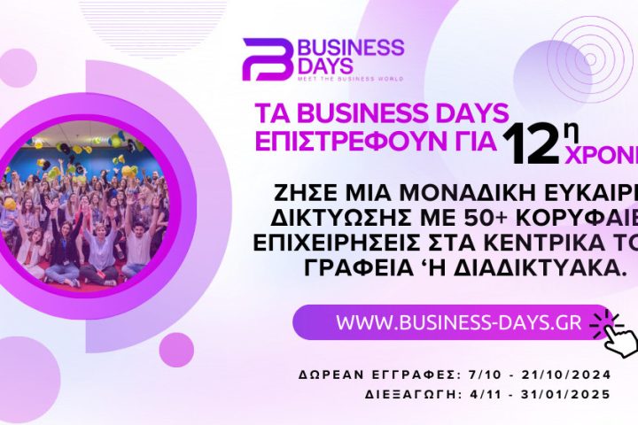 Επιστρέφει για 12η χρονιά ο θεσμός των Business Days