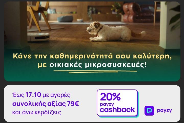 Το 20% της αξίας των αγορών τους σε ευρώ (cashback) κερδίζουν οι καταναλωτές που θα αποκτήσουν στον ΓΕΡΜΑΝΟ οικιακές μικροσυσκευές με payzy by COSMOTE.