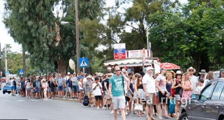Εικόνες συνωστισμού με τουρίστες να σχηματίζουν «ουρές» εκατοντάδων μέτρων έξω από τον αρχαιολογικό χώρο της Κνωσσού, κάνουν τον γύρο του διαδικτύου τις τελευτα