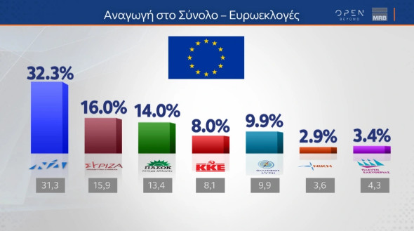 MRB: Πέμπτο κόμμα ο ΣΥΡΙΖΑ – Στα ποσοστά των ευρωεκλογών η ΝΔ