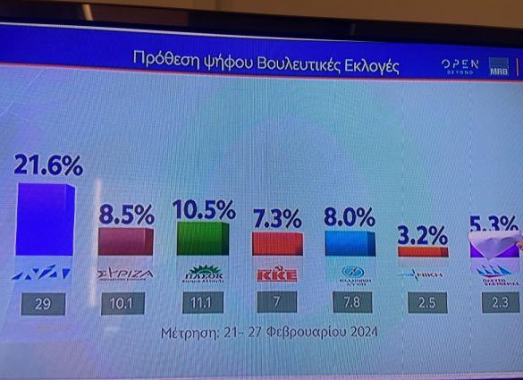 MRB: Στο 29,7% η ΝΔ – 3ο το ΠΑΣΟΚ – 6ος ο ΣΥΡΙΖΑ