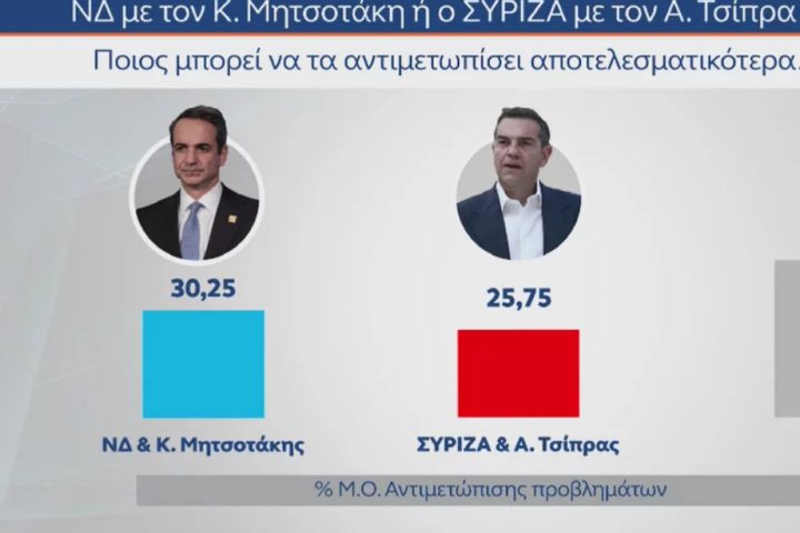 MRB: Στις 6,4 μονάδες η διαφορά ΝΔ – ΣΥΡΙΖΑ – Προβάδισμα Μητσοτάκη για την πρωθυπουργία