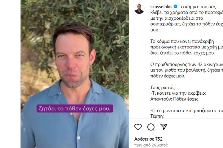 “Η στιγμή έφθασε… Αύριο, στη Θεσσαλονίκη, παρουσιάζω την περιουσιακή κατάσταση” λέει ο Κασσελάκης