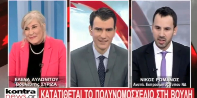 Ν. Ρωμανός σε Ε. Αυλωνίτου: Βιομηχανία κατασκευής νέων γραμματέων και νέων κρατικών φορέων ο ΣΥΡΙΖΑ Ο Νίκος Ρωμανός και η κα Αυλωνίτου προ ημερών στο κεντρικό δελτίο ειδήσεων του Kontra διασταύρωσαν τα ξίφη τους. 10/01 Ελλάδα·Πολιτική