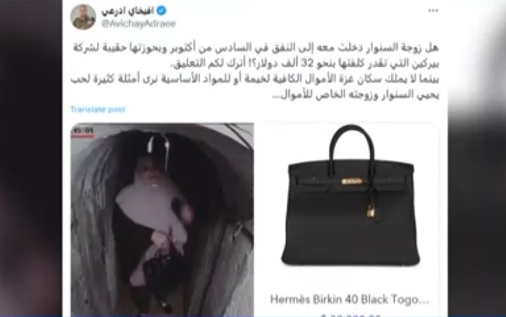 Η γυναίκα του Γιαχία Σινουάρ φαίνεται να κρατάει μια τσάντα γνωστής φίρμας αξίας άνω των 30.000 ευρώ την ώρα που ο πρώην ηγέτης της Χεζμπολάχ προσπαθεί να γλιτώσει από τα ισραηλινά πυρά.