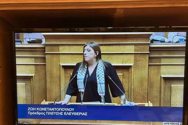 Σόου Κωνσταντοπούλου: Με παλαιστινιακή “μαντίλα” στη Βουλή