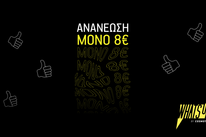 Μόλις με 8€ μπορούν πλέον να ανανεώνουν το υπόλοιπο στο καρτοκινητό τους οι χρήστες του WHAT’S UP, ενώ παράλληλα με την χαμηλή αυτή ανανέωση υπολοίπου, μπορούν όσοι επιθυμούν βασική χρήση να ενεργοποιούν