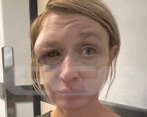 Η εικόνα μιας γυναίκας με πρησμένο πρόσωπο και μάτια γεμάτα φόβο δεν