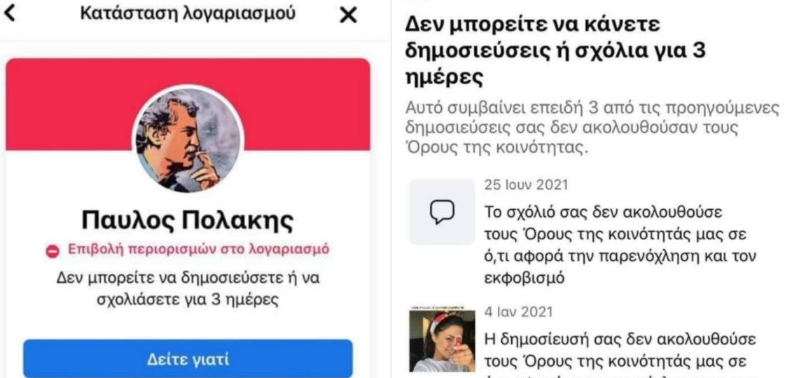 Όπως έκανε γνωστό ο ίδιος, το Facebook μπλόκαρε τον προσωπικό του λογαριασμό με αποτέλεσμα να μην μπορεί να δημοσιεύσει σε αυτόν για κάποιες ημέρες. Βέβαια, ο πρώην αναπληρωτής υπουργός υγείας κάνει λόγο για “στοχοποίησή του από γνωστά νεοδημοκρατικά τρολ, περί… διασποράς fake αντι-επιστημονικών απόψεων που του αποδίδονται, προκειμένου να μπλοκάρει το Facebook τον προσωπικό του λογαριασμό”.