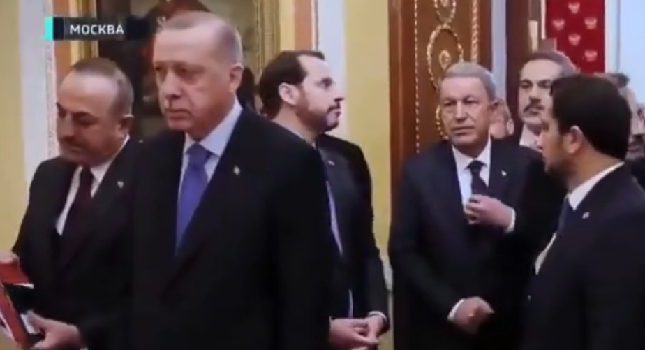 Turkish President Recep Tayyip Erdogan was kept waiting by Russian President Vladimir Putin and his delegation before a meeting, a video circulated by Russian media show.https://english.alarabiya.net/en/News/2020/03/09/Erdogan-kept-waiting-by-Putin-ahead-of-meeting-Video.html …