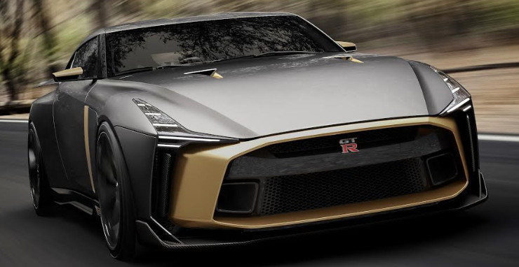 Το Nissan GT-R50 διαθέτει ένα ξεχωριστό χρυσό εξωτερικό στοιχείο που εκτείνεται σε όλο σχεδόν το πλάτος του οχήματος. Το καπό είναι εμφανώς διογκωμένο τονίζοντας την ισχύ του αυτοκινήτου, ενώ οι λεπτοί προβολείς LED εκτείνονται από τους θόλους των τροχών, μέχρι το χείλος πάνω από τις εξωτερικές γρίλιες της εισαγωγής του αέρα. Κάτω από το νέο σχήμα του Nissan GT-R50 από την Italdesign, κρύβεται ένας πραγματικός θησαυρός! Βασιζόμενη στην εμπειρία των αγώνων GT3 της Nissan, η NISMO ενίσχυσε τον συναρμολογημένο στο χέρι κινητήρα V638RETT V6 3.8 λίτρων, που για την περίσταση αποδίδει 720ps και 780 Nm ροπής.