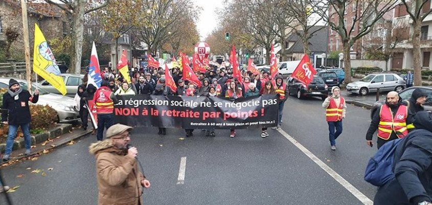 Τα μέλη του ΠΑΜΕ θέλησαν να δηλώσουν τη στήριξή τους στις διαμαρτυρίες των Γάλλων και να συμμετάσχουν στη δεύτερη ημέρα κινητοποιήσεων των εργαζομένων και των συνδικάτων της περιοχής των Βερσαλλιών και του Βαλ ντε Μαρν.