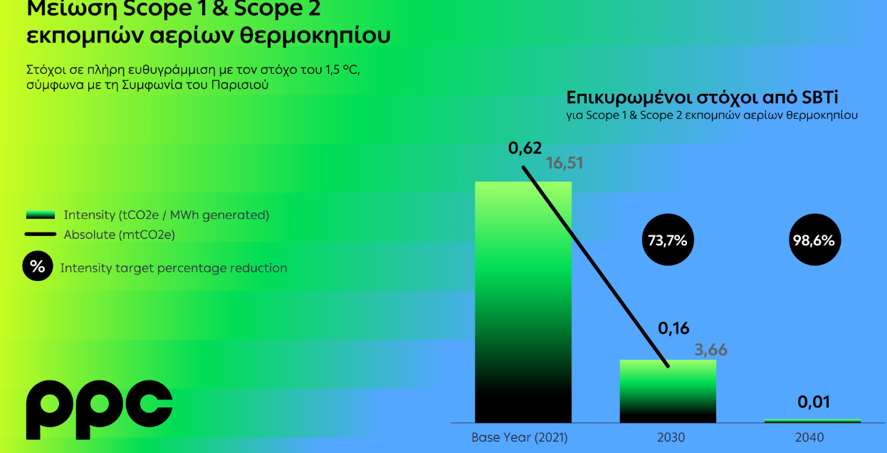 Το SBTi πιστοποιεί την εγκυρότητα των στόχων του Ομίλου ΔΕΗ για μείωση εκπομπών αερίων θερμοκηπίου