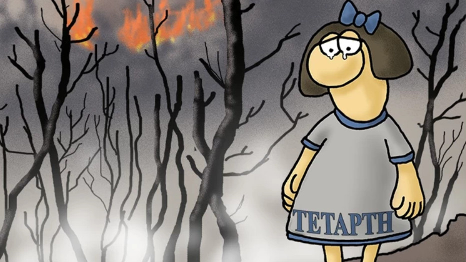 Σκίτσο για τις καταστροφικές φωτιές στην Βαρυμπόμπη και τις άλλες εστίες πυρκαγιάς στην Ελλάδα έφτιαξε ο Αρκάς.