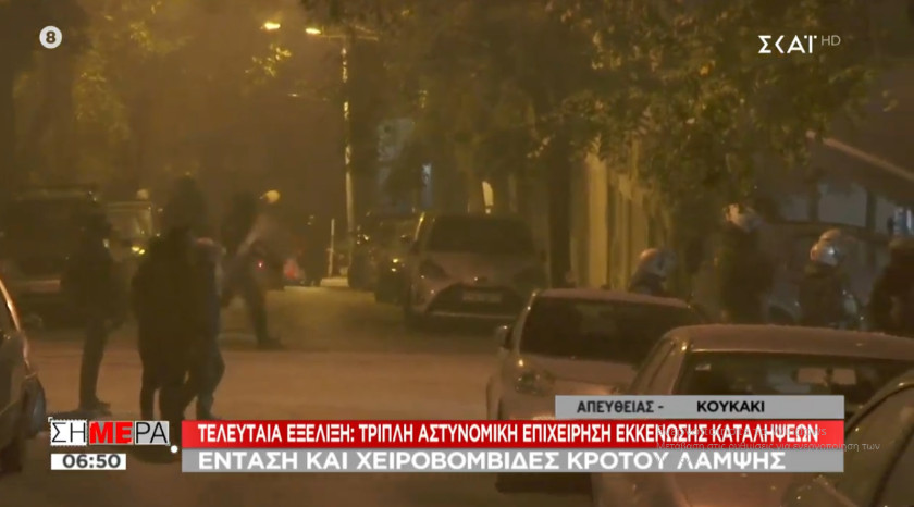Σε εξέλιξη βρίσκεται μεγάλη τριπλή αστυνομική επιχείρηση από τα ξημερώματα της Τετάρτης για την εκκένωση καταλήψεων στο Κουκάκι. Προσήχθησαν οκτώ άτομα από τις καταλήψεις και δύο κάτοικοι (πατέρας και γιος).