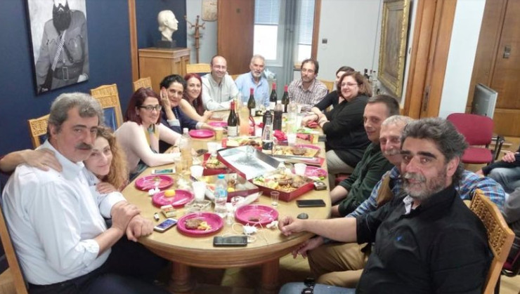 Τσιμπούσι στο γραφείο του ετοίμασε πριν από την ψηφοφορία της Βουλής ο Παύλος Πολάκης για τα γενέθλιά του. Συμπλήρωσε τα 54 χρόνια και το γιόρτασε με φόντο το πορτρέτο του Άρη Βελουχιώτη.
