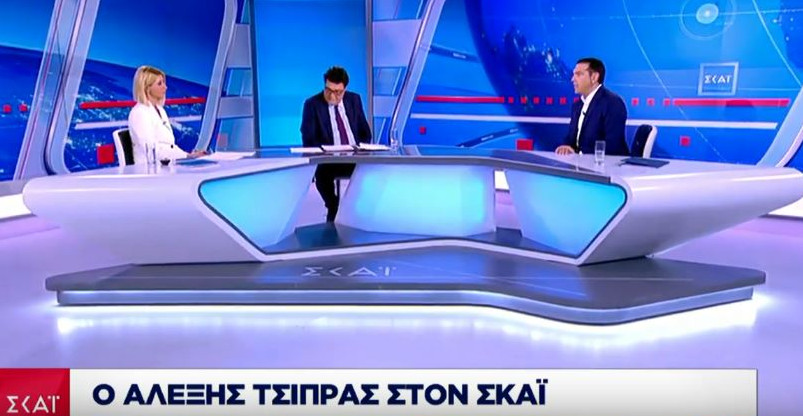 Ο πρωθυπουργός υποστήριξε πως ο ΣΚΑΪ πολλές φορές ξεπέρασε τα όρια της κριτικής, ανέφερε πως ο ΣΥΡΙΖΑ αποτελούσε πηγή «ανασφάλειας» για τους ιδιοκτήτες μέσων ενημέρωσης ενώ σημείωσε πως αποφάσισε να σπάσει το εμπάργκο στον ΣΚΑΪ επειδή θέλει να γίνει μία προγραμματική συζήτηση ενόψει των εκλογών. Αρνήθηκε ότι υπήρχε διαπλοκή και απόπειρα να στηθεί φιλοκυβερνητικός σταθμός με τον Χρήστο Καλογρίτσα και δήλωσε πως δεν θυμάται τις εμπρηστικές δηλώσεις του τότε κυβερνητικού εταίρου του Πάνου Καμμένου σε βάρος του ΣΚΑΪ, αλλά είναι «κατακριτέες»,