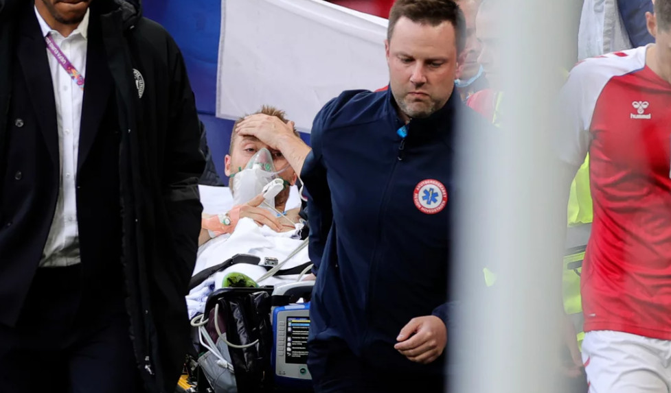 Το ματς διακόπηκε στο 42ο λεπτό μετά από αιφνίδια πτώση του διεθνούς άσου της Δανίας και για τουλάχιστον 15 λεπτά του παρασχέθηκαν οι πρώτες βοήθειες για να μην χάσει τη ζωή του, ενώ χρησιμοποιήθηκε και απινιδωτής. Οι παίκτες των δύο ομάδων ξέσπασαν σε κλάματα, όπως και στις εξέδρες υπήρξε παγωμάρα.