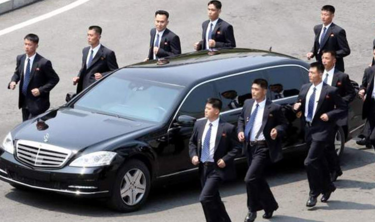 Οι σωματοφύλακες «συνελήφθησαν» από τα τηλεοπτικά συνεργεία, που δίνουν «μάχη» για ένα καρέ του Κιμ Γιονγκ Ουν, να τρέχουν δίπλα από τη λιμουζίνα που τον μετέφερε στο από το αεροδρόμιο στο μέρος όπου διαμένει.