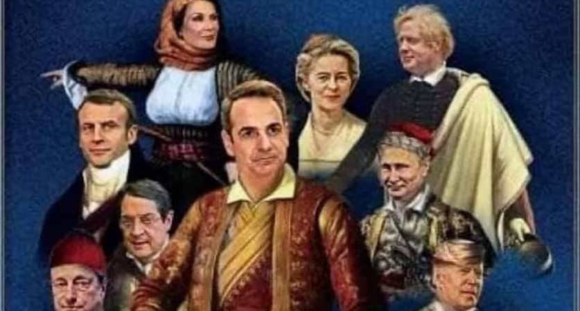 Συγκεκριμένα τη θέση του στρατηγού Μακρυγιάννη έχει πάρει ο πρωθυπουργός Κυριάκος Μητσοτάκης, της Μαντούς Μαυρογένους η Ούρσουλα φον ντερ Λάιεν, του Κωνσταντίνου Κανάρη ο Ρώσος πρόεδρος Βλάντιμιρ Πούτιν, του Ιωάννη Καποδίστρια ο Γάλλος πρόεδρος Εμάνουελ Μακρόν, του Λόρδου Μπάιρον ο Βρετανός πρωθυπουργός Μπόρις Τζόνσον, ο Ιταλός πρωθυπουργός Μάριο Ντράγκι είναι ο Ανδρέας Μιαούλης, ο Αμερικανός πρόεδρος Τζο Μπάιντεν ο Θεόδωρος Κολοκοτρώνης και η Γιάννα Αγγελοπούλου Δασκαλάκη η Λασκαρίνα Μπουμπουλίνα.