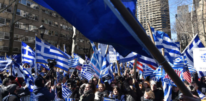 Χιλιάδες ομογενείς από τη Νέα Υόρκη και άλλες πολιτείες, συγκεντρώθηκαν το μεσημέρι της Κυριακής απέναντι από το κτίριο του ΟΗΕ, στο συλλαλητήριο που διοργάνωσαν η Ομοσπονδία Ελληνικών Σωματείων Μείζονος Νέας Υόρκης και η Παμμακεδονική Ένωση Αμερικής, σε συνεργασία με το Hellenic American Congress, διαδηλώνοντας την αντίθεσή τους στη χρήση του όρου «Μακεδονία» στην ονομασία της ΠΓΔΜ.