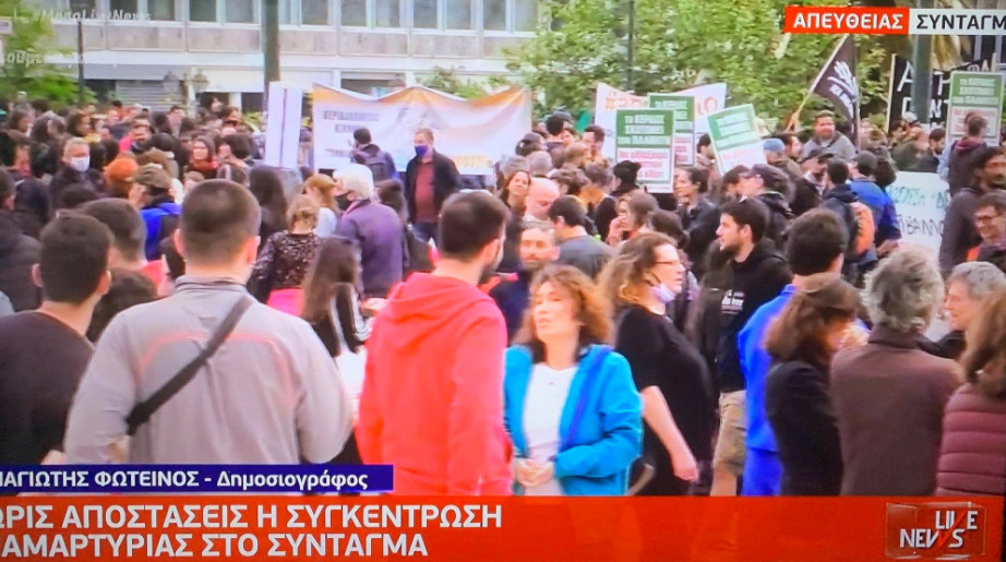 Χωρίς αποστάσεις και με λίγες μάσκες η συγκέντρωση του ΣΥΡΙΖΑ στο Σύνταγμα